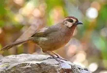 白颊噪鹛是雀形目噪鹛科噪鹛属鸟类,又称土画眉、小画眉、小噪鹃。成鸟额至头顶栗褐色,长眉纹、眼先和颊纹棕白色,眼后至耳羽深褐色,…全部>>