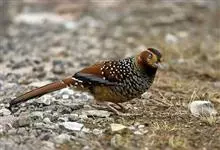 大噪鹛:中型鸟类,体长32-36厘米。额至头顶黑褐色,背栗褐色满杂以白色斑点,斑点前缘或四周还围有黑色。初级覆羽、大覆羽和初级飞羽具白色端斑。尾特长,均具黑色亚端斑和白色端斑。颏、喉棕褐色,…全部>>