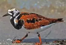 翻石鹬:体重82-135克,体长180-240毫米。体型高矮兼称,看起来十分的滑稽。它们在繁殖季时体色非常醒目,由栗色、白色和黑色交杂而成,嘴短,黑色,脚橙红色。到了冬天,翻石鹬身上的栗红色就会消失,…全部>>