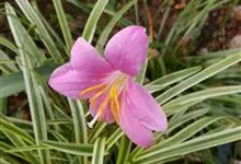 小韭兰学名韭菜莲又名风雨花、菖蒲莲、红玉帘和旱水仙,多年生草本,鳞茎卵球形,基生叶常数枚簇生,线形,扁平,花单生于花茎顶端,下有佛焰苞状总苞,花玫瑰红色或粉红色,蒴果近球形,种子黑色,花期夏秋。韭莲…全部>>