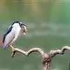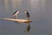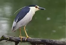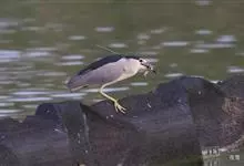 夜鹭是中型涉禽,体长46-60厘米。体较粗胖,颈较短;嘴尖细,微向下曲,黑色;胫裸出部分较少,脚和趾黄色;头顶至背黑绿色而具金属光泽;上体余部灰色;下体白色;枕部披有2-3枚长带状白色饰羽,下垂至背上,…全部>>