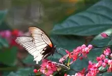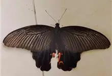 美凤蝶又名多型蓝凤蝶、大凤蝶,是鳞目凤蝶科凤蝶属动物。美凤蝶雄蝶无尾突,翅黑色,正面各翅室中部有深色条纹,分布蓝色鳞片,反面前后翅基部有红斑,后翅臀角有环状红斑。雌蝶具多型,前翅浅灰色,外缘和翅脉黑色,…全部>>