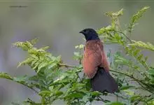 褐翅鸦鹃,是鹃形目鸦鹃科鸦鹃属的鸟类。褐翅鸦鹃的身体为黑色;头颈和胸带蓝紫色金属光泽并具黑亮的羽干纹,下胸至腹部泛金属绿光泽;两翼和肩部为棕栗色,外侧飞羽具暗色羽端,尾羽闪铜绿色光泽;虹膜赤红色,…全部>>