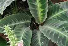 绒叶肖竹芋 Lindl.)是竹芋科,肖竹芋属多年生中等大草本植物,株高可达1米。叶片长圆状披针形,不等侧,叶面深绿,有黄绿色的条纹,天鹅绒般,叶背幼时浅灰绿色,老时淡紫红色,头状花序,花冠紫堇色或白色,…全部>>