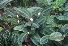 绒叶肖竹芋 Lindl.)是竹芋科,肖竹芋属多年生中等大草本植物,株高可达1米。叶片长圆状披针形,不等侧,叶面深绿,有黄绿色的条纹,天鹅绒般,叶背幼时浅灰绿色,老时淡紫红色,头状花序,花冠紫堇色或白色,…全部>>