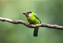 金喉拟啄木鸟,是须鴷科、拟啄木鸟属的鸟类。金喉拟啄木鸟为小型鸟类,体长19-24厘米。额深红色,头顶金黄色,后枕具一大块深红色斑,耳羽和头侧银灰色,上体草绿色,颏和上喉金黄色,下喉淡银灰色,…全部>>