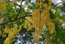 腊肠树:是豆科腊肠树属植物。落叶乔木,高可达15米;枝细长;树皮灰色,老时粗糙,暗褐色。叶长30-40厘米,小叶对生,薄革质,阔卵形,卵形或长圆形,边全缘,幼嫩时两面被微柔毛,老时无毛;叶脉纤细,…全部>>