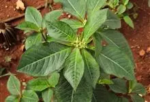 猩猩草:常绿或半常绿灌木,盆栽时株高0.5米-2米,在亚热带地区可长到6米以上。茎直立而光滑,单叶互生,卵状椭圆形至阔披针形,具不规则的深缺刻。长10-15厘米。花小,有蜜腺,排列成密集的伞房花序。…全部>>