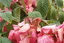 红纸扇是茜草科玉叶金花属植物。为多年生常绿灌木。植株高1.5-2米,树冠广圆形,分枝多,茎干绿色至深褐色。叶宽卵圆形,亮绿色,中脉及例脉密生红线毛,长8-15厘米。…全部>>