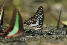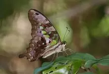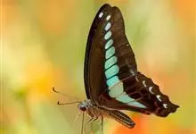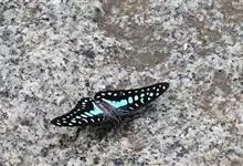 青带凤蝶Graphium sarpedon ,又名青凤蝶,是最普遍的中型凤蝶,飞行速度很快。青带凤蝶的翅膀中央有许多浅蓝色的斑点,很整齐地排列成一条直线。这些斑点由上而下逐渐变大,就像一条青色的带子。全部>>