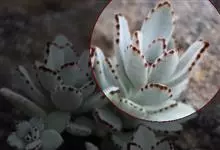 褐斑伽蓝是景天科、伽蓝菜属多年生肉质草本植物或小灌木。全株灰白色,密布白色茸毛。叶片长卵形,上半部具有齿状叶缘,叶缘处有褐色斑点;叶序对生或以近轮生的方式紧密排列。花期为春、夏季,…全部>>