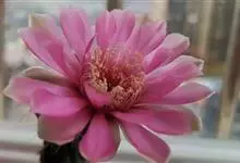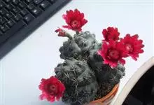 绯花玉 Speg.)是仙人掌科、裸萼球属多肉植物,植株呈扁球形,表皮墨绿色,刺针状,每个刺座有5枚灰色周刺,花生于球体顶端,夏季开花,花色有白、粉红、深红等。果实纺锤形,深灰绿色,种子黑色。…全部>>