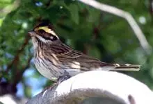 黄眉鹀是雀形目鹀科鹀属鸟类,体型中等偏小。雄鸟头部主要为黑色,冠纹白色,眉纹前段黄色而后段白色,喉白而具黑色细碎纵纹;上体主要为栗褐色,背具黑褐色纵纹;翼主要为黑褐色,…全部>>