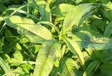 酸模叶蓼 Delarbre),是蓼科蓼属的一年生草本。株高可达90厘米;茎直立,分枝,节部膨大;叶披针形或宽披针形,先端渐尖或尖,基部楔形,上面常具黑褐色新月形斑点,…全部>>