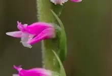 绶草 Ames)是兰科绶草属多年生草本植物。植株高13-30厘米;茎较短,近基部有2-5枚叶;花茎直立,;花小,有紫红色、粉红色或白色,在花序轴上呈螺旋状排生,花瓣呈斜菱状长圆形,…全部>>