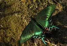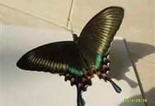 绿带翠凤蝶,又名深山凤蝶,为凤蝶科凤蝶属下的一种。分布于韩国、日本、中国台湾、中国大陆等地。翅黑色,满布金绿色鳞片。前翅亚缘具黄绿色横带纹。后翅外缘有6个略呈新月形的红斑,…全部>>