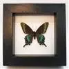 巴黎翠凤蝶中型凤蝶,躯体黑褐色,散布绿色亮鳞。后翅M3脉端有一明显叶状尾突。翅背面底色黑褐色,密布亮鳞,后翅前侧有一枚蓝绿色亮斑,与后翅中央之绿色亮线连接。后翅臀区有一紫红色圈纹。翅腹面底色褐色,于…全部>>