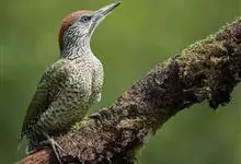 绿啄木鸟是鴷形目啄木鸟科绿啄木鸟属鸟类。雄鸟额和头顶前部辉红色,鲜丽异常;雌鸟头上无红色;嘴尖直,尖锐如凿;舌细长而能伸缩,先端列生短钩;嘴基部至眼有一黑色条纹;头的余部灰色,颜面、喉部和前颈较浅,…全部>>