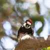 大斑啄木鸟隶属鸟纲鴷形目啄木鸟科。雄鸟头顶黑色,枕部红色,眼先、颊部和耳羽白色,颈部污白色,下嘴基部至后颈有1道黑色条纹并与从颈侧延伸到胸侧的黑色条带相连,背和两翼黑色,肩部具1个大的白色斑块,…全部>>