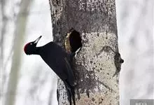 白腹黑啄木鸟,是啄木鸟科、黑啄木鸟属的中型鸟类,体长43-46厘米,头顶具长的红色羽冠,颚纹亦为红色,其余头、颈、胸和上体黑色,腰和腹白色,飞翔时白色腋羽和翅下覆羽亦明显可见。雌鸟头顶黑色,…全部>>