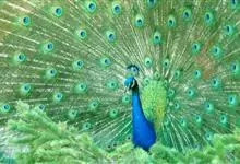 绿孔雀是鸡形目雉科孔雀属鸟类,别名:孔雀、越鸟、爪哇绿孔雀。雄性绿孔雀全身呈翠绿色,并反紫铜色光。头顶有一簇直立的冠羽,尾上复羽发达的约长1米,每羽端部有一个蓝色和翠绿色镶嵌的眼状斑,…全部>>