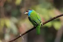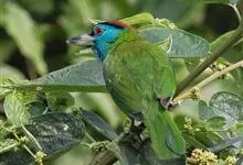 蓝喉拟啄木鸟,是须鴷科、拟啄木鸟属的鸟类。蓝喉拟啄木鸟为小型鸟类,体长20-23厘米。前额至头顶鲜红色,其上有一宽阔的黑色横带,将此红色分为前后二块;头侧、颏、喉蓝色,下喉两侧各具一红色点斑。…全部>>