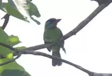 黑眉拟啄木鸟,为须䴕科、拟啄木鸟属的小型鸟类,体长20-25厘米,外形和金喉拟啄木鸟非常相似,但具粗著的黑色眉纹,头侧和耳覆羽以及下喉蓝色而不为银灰色,前颈两侧各有一块鲜红色斑。全部>>