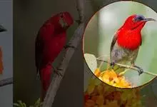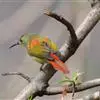 黄腰太阳鸟共有16个亚种,小型鸟类,体长10-15厘米。嘴细长而向下弯曲,雄鸟额和头顶前部金属绿色,头顶后部橄榄褐色。其余头、颈、背、肩、颏、喉、胸以及翅上中覆羽和小覆羽概为红色,腰黄色,…全部>>