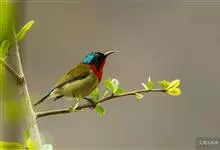 黑胸太阳鸟:小型鸟类,体长9-15厘米。嘴细长而向下曲。雄鸟中央尾羽特长,尾呈楔形,头顶至后颈紫蓝色具金属光泽;背褐红色,腰有一黄色横带,尾上覆羽和尾紫蓝色;颏、喉和上胸乌黑色,有的下胸为硫黄色,…全部>>