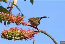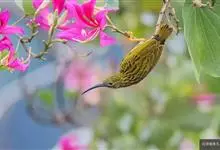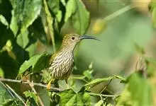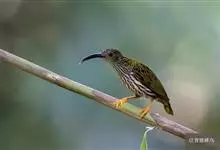 纹背捕蛛鸟:为太阳鸟科捕蛛鸟属的鸟类。是太阳鸟科中体型较大的一种,体重25-45克,体长160-210毫米。嘴粗长而尖且向下弯曲。上体橄榄黄色具黑色中央斑纹。下体淡黄白色满布黑色纵纹,尾具黑色次端斑。…全部>>