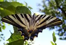 虎凤蝶是虎凤蝶属的蝴蝶种类,成虫体态中型,翅膀基色为黄色,前翅外缘有宽的黑带,翅面有一些黑色短纹,犹如虎皮。后翅外缘波形,尾突短,外缘黑带上镶有弯月形黄斑,黑带的中间嵌有蓝色斑点,最里面有一列弯月形…全部>>