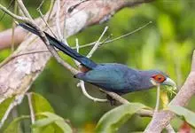 绿嘴地鹃:体形似小鸦鹃,但羽色大致绿灰;嘴绿色,头侧眼的周围有一裸区;后爪弯曲。虹膜赤红色,眼外周裸露皮肤繁殖期为赤红色,非繁殖期为暗红色。嘴绿色,基部及先端色暗,近嘴角处常沾红色,非繁殖期下嘴黄褐色,…全部>>