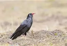 红嘴山鸦,是脊索动物门鸟纲雀形目鸦科鸟类。红嘴山鸦的成鸟通体羽毛纯黑色具有蓝色金属光泽,翼和尾泛有蓝绿色金属光泽;虹膜暗褐色,喙较为尖细,并且呈镰状下弯,喙和脚朱红色。…全部>>