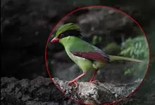 蓝绿鹊:中型鸟类,共有5个亚种。体长36-38厘米。尾长,嘴、脚红色。通体羽色主要为草绿色,宽阔的黑色贯眼纹向后延伸到后颈,在绿色的头侧极为醒目。两翅栗红色,内侧飞羽具黑色次端斑和白色尖端。尾绿色,…全部>>