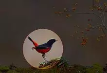 红头咬鹃: 体大,体长约33厘米,体重75-110克。头、颈暗绯红色;背、肩锈褐色。两翅黑色,翅上覆羽和内侧飞羽密被白色细虫蠹斑纹,初级飞羽黑色,外侧具白色羽缘;腰和尾上覆羽较多锈色。中央尾羽深栗色,…全部>>