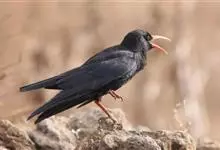 红嘴山鸦,是脊索动物门鸟纲雀形目鸦科鸟类。红嘴山鸦的成鸟通体羽毛纯黑色具有蓝色金属光泽,翼和尾泛有蓝绿色金属光泽;虹膜暗褐色,喙较为尖细,并且呈镰状下弯,喙和脚朱红色。…全部>>