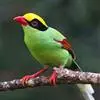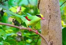 蓝绿鹊:中型鸟类,共有5个亚种。体长36-38厘米。尾长,嘴、脚红色。通体羽色主要为草绿色,宽阔的黑色贯眼纹向后延伸到后颈,在绿色的头侧极为醒目。两翅栗红色,内侧飞羽具黑色次端斑和白色尖端。尾绿色,…全部>>