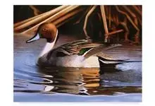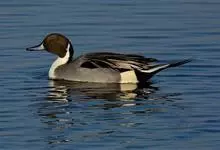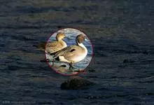 针尾鸭,是雁形目鸭科鸭属动物。体长约75厘米的大型戏水鸭,雄鸟头暗褐色,颈侧有白色纹路,向下与胸部白色相连,中央一对尾羽特别长;背灰色,有黑色细纹;翼镜绿色,胸腹白色,尾下覆羽黑色;雌鸟体羽大致为褐色,…全部>>