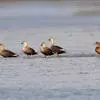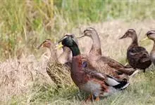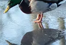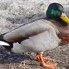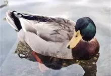 绿头鸭属游禽,大型鸭类。体长47-62厘米,体重大约1千克,外形大小和家鸭相似。雄鸟嘴黄绿色,脚橙黄色,头和颈辉绿色,颈部有一明显的白色领环。上体黑褐色,腰和尾上覆羽黑色,两对中央尾羽亦为黑色,且向…全部>>