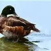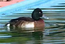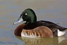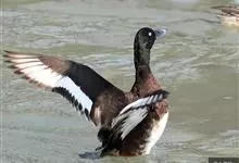 青头潜鸭,是雁形目鸭科潜鸭属的迁徙性鸟类。雄性头部和颈部为黑色,有绿色光泽,上体为黑褐色,尾下和翼下覆羽为白色。雌性头部和颈部为黑褐色,腹部以白色羽毛为主,两翅、腰和尾上尾下覆羽与雄性基本相同。…全部>>