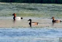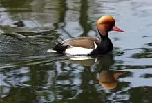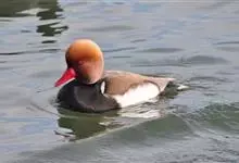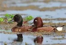 红头潜鸭为鸟纲雁形目鸭科潜鸭属动物,又名红头鸭,矶凫,体长约46厘米;雄鸟头部栗红色,胸部黑色,背部及腹部灰白色,尾黑色,嘴蓝灰色且端部黑色;雌鸟头部及胸部暗褐色,背部及腹部灰色,尾部褐色,嘴基部色浅。…全部>>