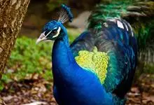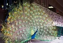蓝孔雀,是鸡形目雉科孔雀属中的一种鸟。蓝孔雀是鸡类中的“巨人”,雄鸟和雌鸟的羽色有差,雄鸟头上具冠羽,头、颈和胸部均为蓝色,尾羽并不长,构成尾屏的尾上覆羽可达身长的2倍,平时合拢托在身后,…全部>>
