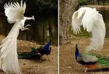白孔雀,脊椎动物,鸟纲,雉科。其全身洁白无瑕,羽毛无杂色,眼睛呈淡红色国际上公认的孔雀品种只有蓝孔雀和绿孔雀,白孔雀一般指人工繁育下野生蓝孔雀的变异品种,数量稀少,是极为珍贵的观赏鸟。但经过人工驯养,…全部>>