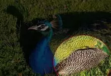 刚果孔雀:体型较小,体长60-70厘米,体重约1.2-1.5千克。刚果孔雀有违鸟类世界一般规律的生理特征,雌性比雄性更漂亮。雄性通体呈紫蓝色,颈部裸露出鲜红色的皮肤,雌性则呈红褐色,…全部>>
