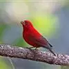 血雀雀科朱雀属鸟类,体重36-49克;体长155-182毫米。雄鸟除眼先、翼与尾为黑色外,通体为鲜红色;嘴鲜黄;雌鸟暗橄榄绿色,羽端较淡或带黄色;腰鲜黄;嘴较暗。虹膜褐色;嘴黄色;腿和脚褐色。…全部>>