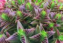 茜之塔 Toelken)是景天科青锁龙属多年生肉质草本植物。茜之塔叶交互对生,紧密排列,三角形,绿色,冬季叶转变呈红色;花小,白色;花期秋季。茜之塔因其整齐层叠的紫红色叶片让人想到红色佛塔,故名。…全部>>