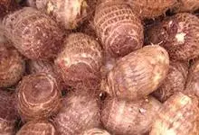 芋头又称芋、芋艿,天南星科植物的地下球茎,形状、肉质因品种而异,通常食用的为小芋头。多年生块茎植物,常作一年生作物栽培。叶片盾形,叶柄长而肥大,绿色或紫红色;植株基部形成短缩茎,逐渐累积养分肥大成肉…全部>>