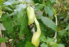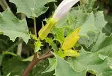 曼陀罗,茄科曼陀罗属一年生大型草本植物,全株光滑。有臭气;叶呈广卯形,边缘具不规则波状浅齿裂;花单生于枝杖间或叶腋,直立,有短梗;花萼是筒状裂片三角形,颜色为白色或淡紫色;果实为蒴果卵状,…全部>>