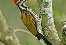 绿拟啄木鸟为鴷形目,须科,拟啄木属的一种。形较大拟啄木鸟略小,体长约260mm。头、颈及胸浅褐而具淡黄白色条纹;喉几为淡黄白色;身体余部草绿色。虹膜棕褐色,眼周裸露部黄色;嘴峰角黄色;跗跖和趾角黄…全部>>