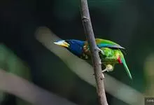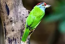 金喉拟啄木鸟,是须鴷科、拟啄木鸟属的鸟类。金喉拟啄木鸟为小型鸟类,体长19-24厘米。额深红色,头顶金黄色,后枕具一大块深红色斑,耳羽和头侧银灰色,上体草绿色,颏和上喉金黄色,下喉淡银灰色,…全部>>